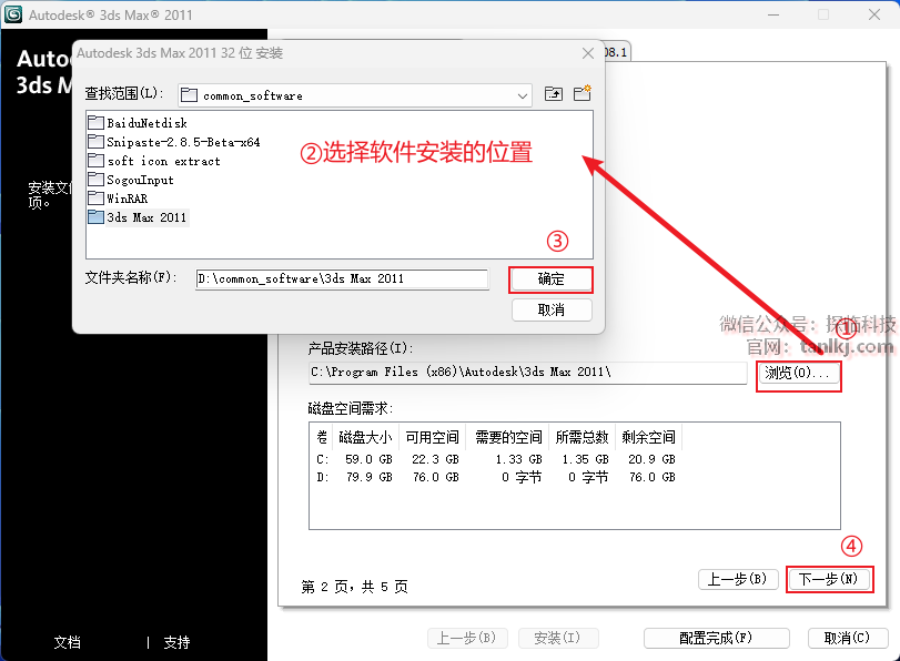 ②选择软件安装的位置,安装路径不能包含任何中文字符;