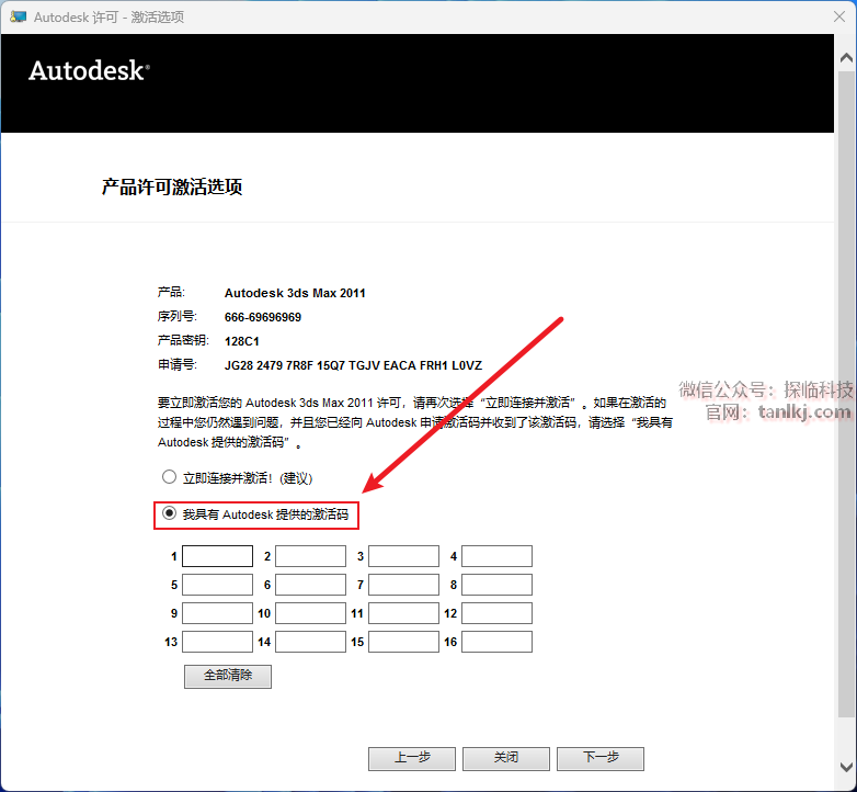 ②复制【Activation】框中的激活码粘贴到指定位置;