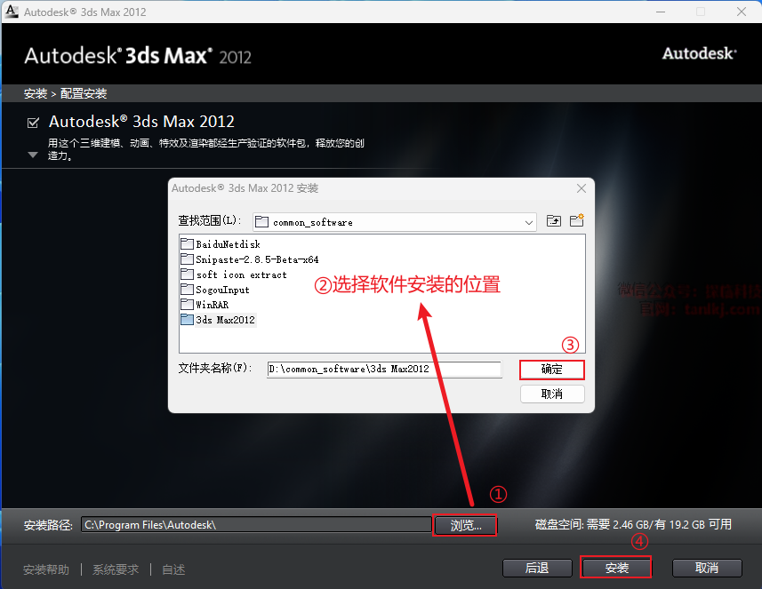 ②选择软件安装的位置,安装路径不能包含任何中文字符;