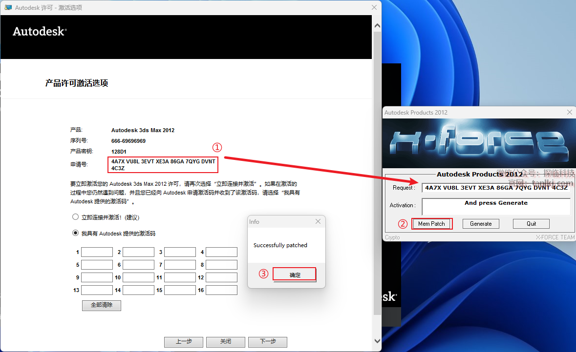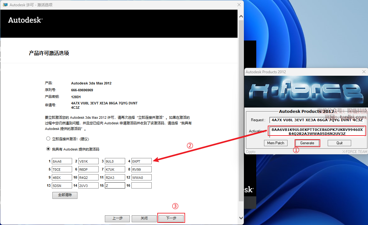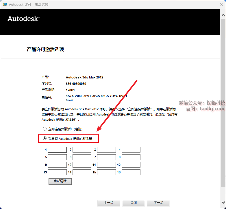 ②复制【Activation】框中的激活码粘贴到指定位置;