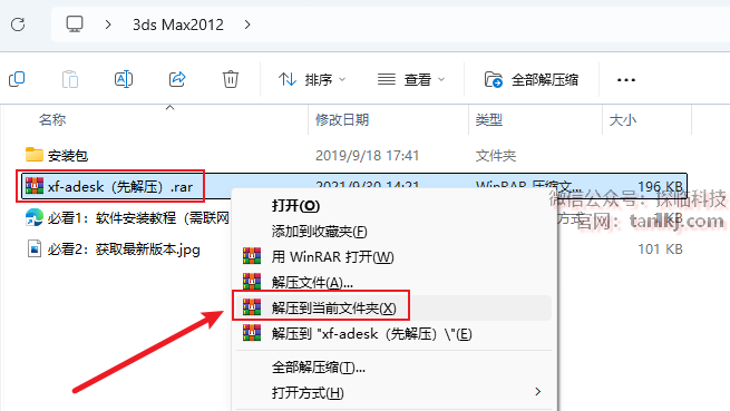打开之前解压后的文件夹,解压文件【xf-adesk(先解压)】。