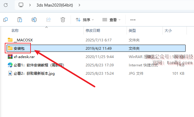 打开解压后的文件夹,双击打开文件夹【安装包】。