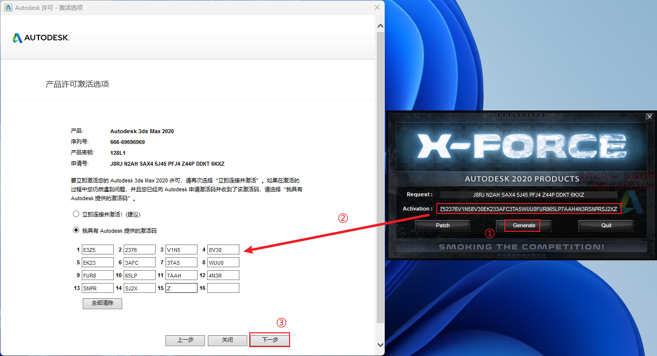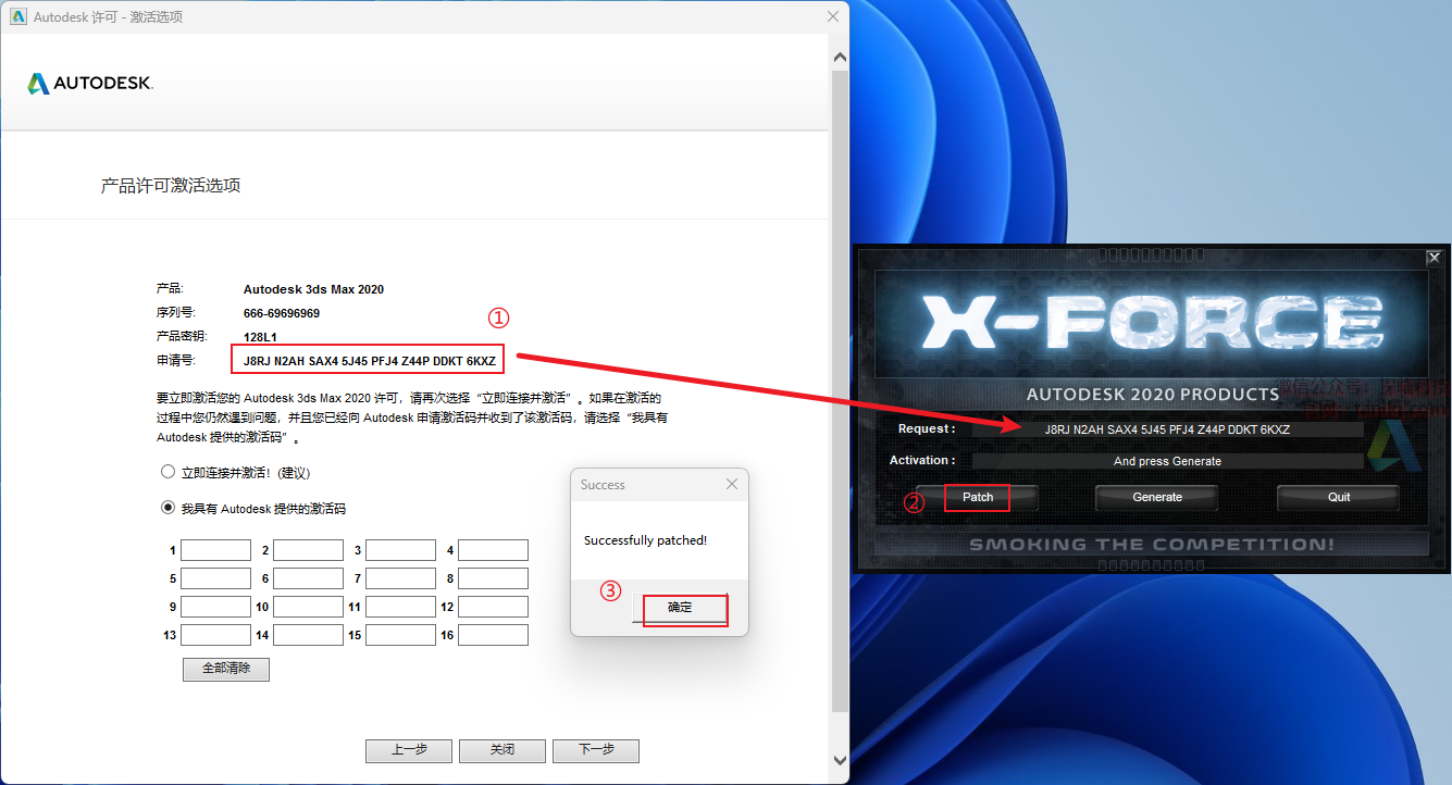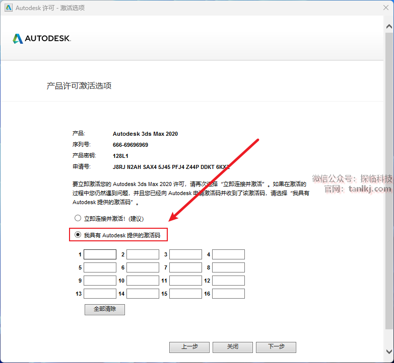 ②复制【激活码】框中的激活码粘贴到指定位置;