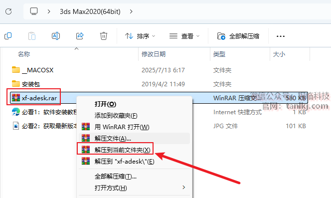 打开之前解压后的文件夹,解压文件【xf-adesk】。