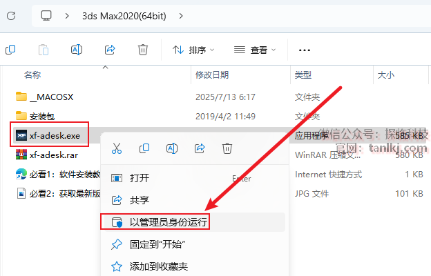 右键解压出来的程序【xf-adesk】,点击【以管理员身份运行】。