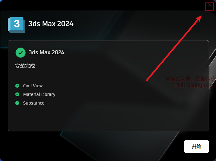 安装完成后,点击右上角的【X】。