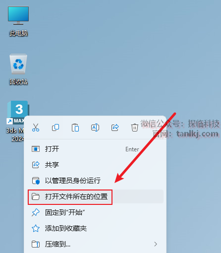 在桌面,右键软件【3ds Max 2024】,点击【打开文件所在的位置】。