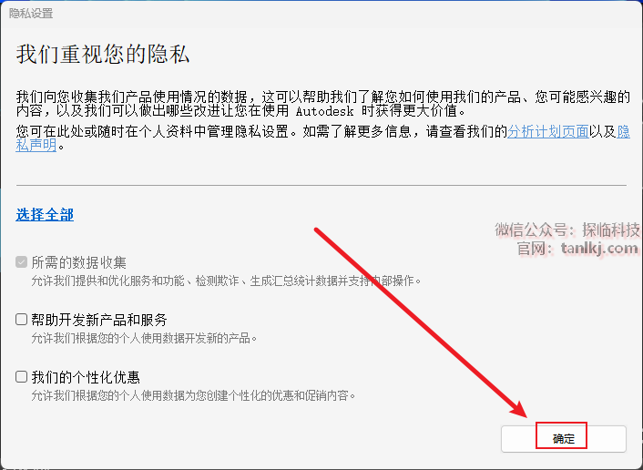 ①勾选【我同意使用条款】;