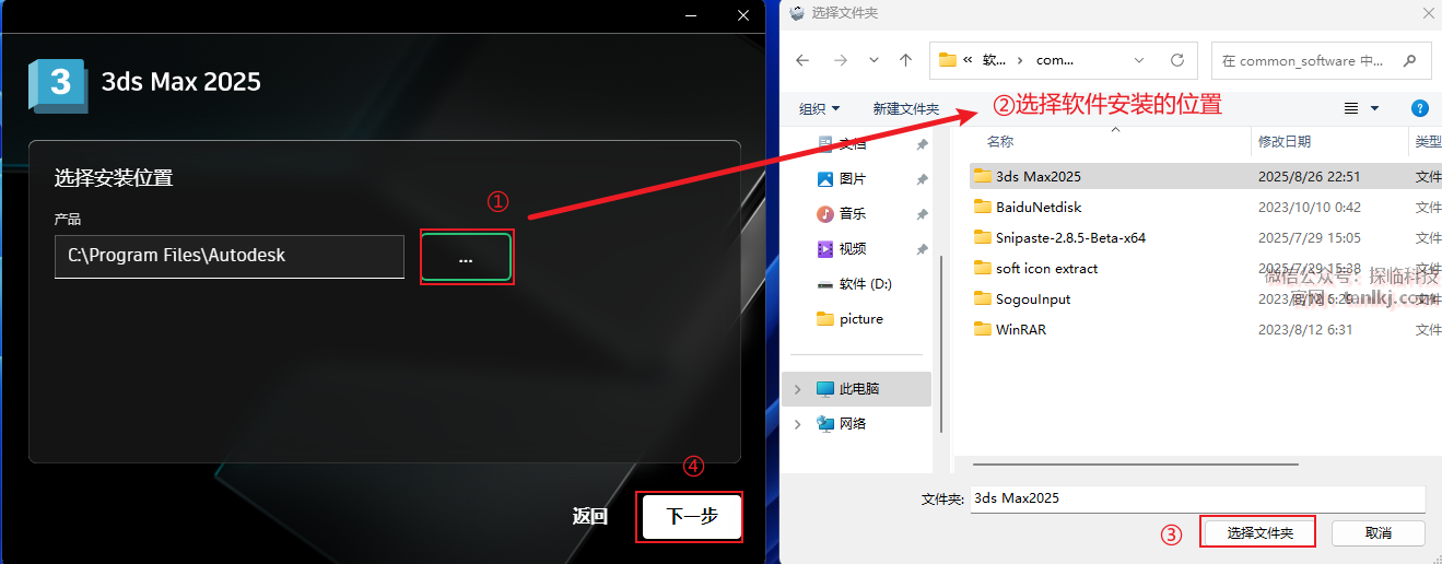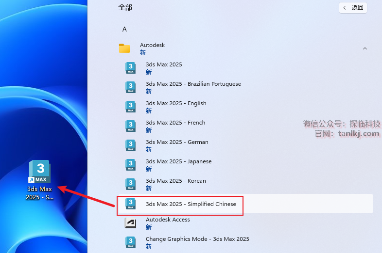 找到并打开文件夹【Autodesk】,将软件【3ds Max 2025 – Simplified Chinese】拖至桌面创建快捷方式。