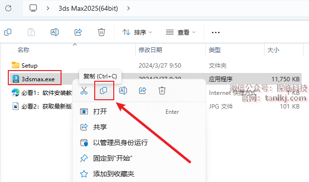 打开之前解压后的文件夹,复制文件【3dsmax】。