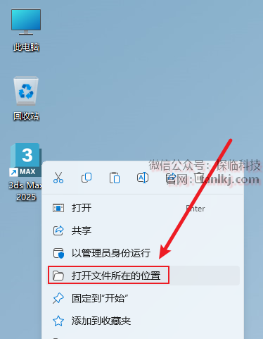 在桌面,右键软件【3ds Max 2025】,点击【打开文件所在的位置】。