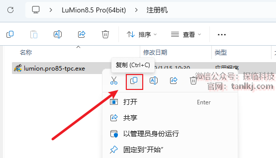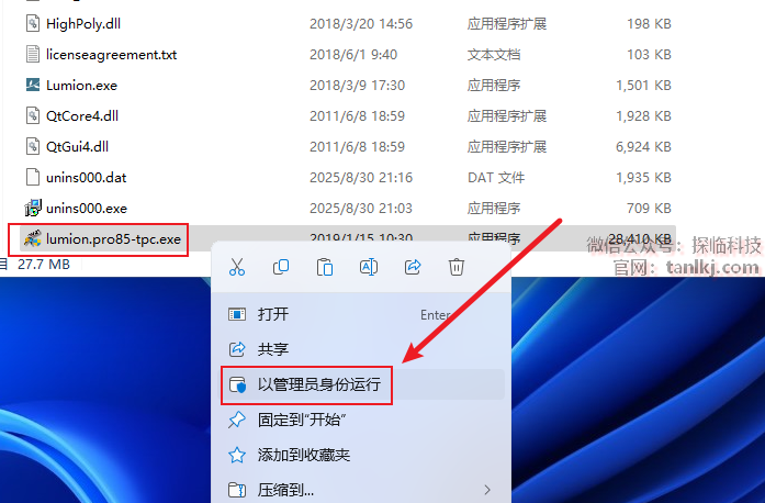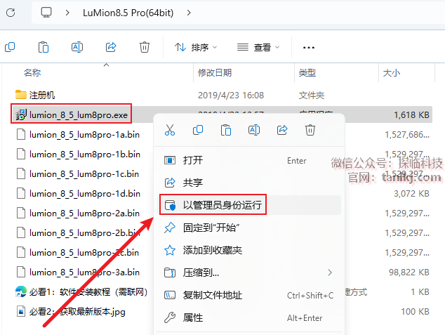 打开解压后的文件夹,右键程序【Lumion_8_5_…】,点击【以管理员身份运行】。