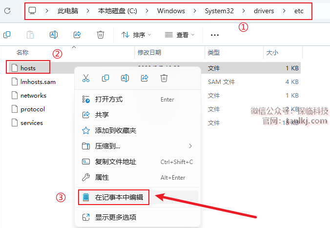 ①按如下路径依次打开:C:\Windows\System32\drivers\etc