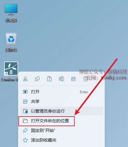 在桌面,右键软件【Lumion 8.5】,点击【打开文件所在的位置】。