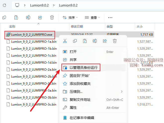 右键程序【Lumion_9_0_2…】,点击【以管理员身份运行】。