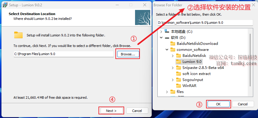 ②选择软件软件安装的位置,安装路径中不能包含任何中文字符;