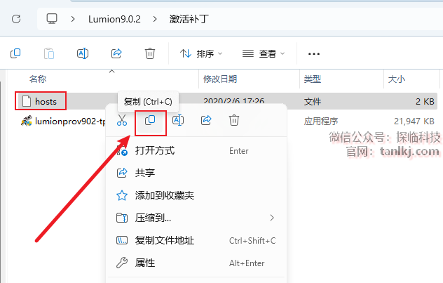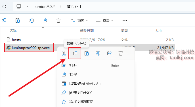 回到【激活补丁】文件夹中,复制文件【lumionprov902-tpc】。