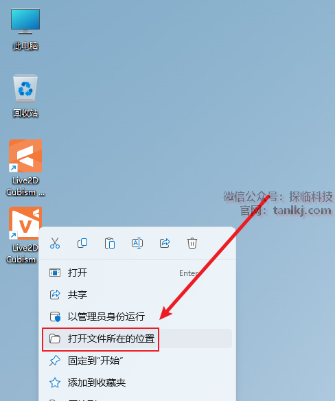 在桌面,右键软件【Live2D Cubism Viewer 4.2】,点击【打开文件所在的位置】。