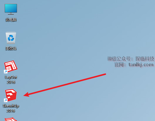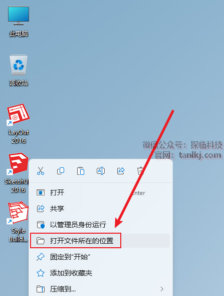 在桌面,右键软件【SketchUp 2016】,点击【打开文件所在的位置】。