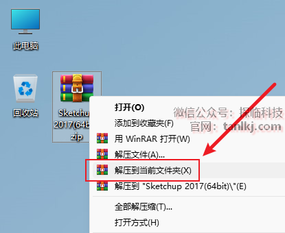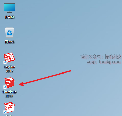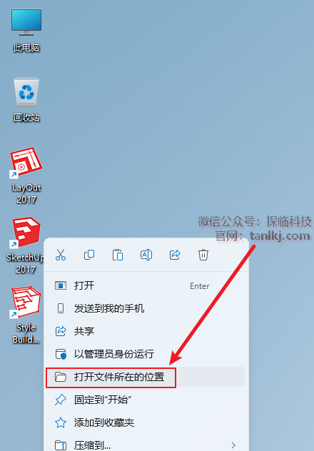 在桌面,右键软件【SketchUp 2017】,点击【打开文件所在的位置】。