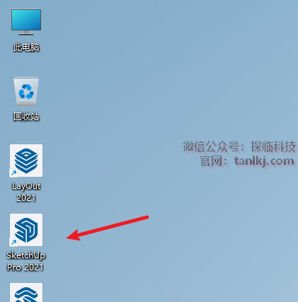 在桌面,双击运行软件【SketchUp 2021】。