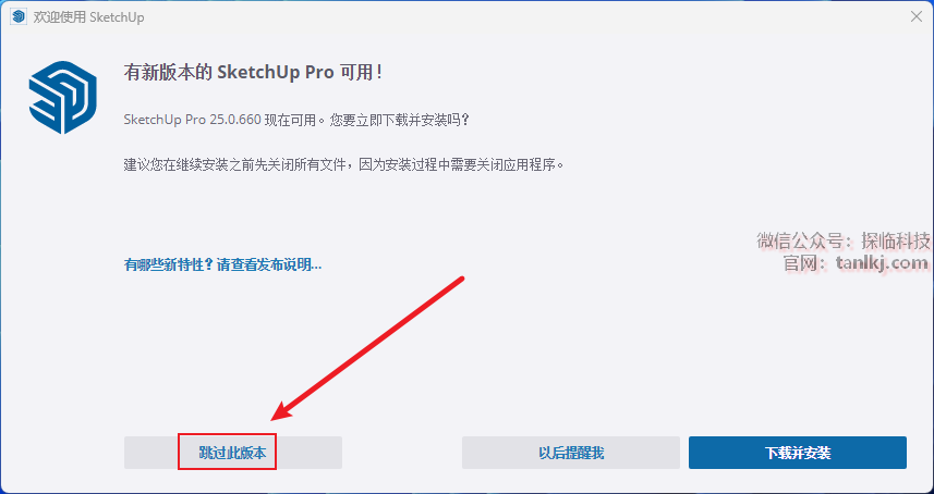 点击【跳过此版本】。