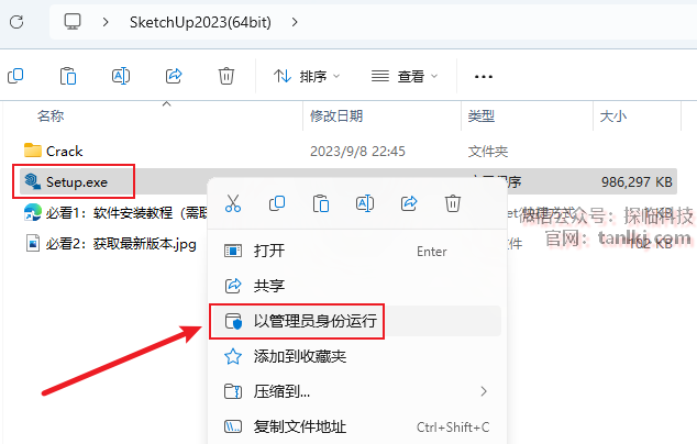 打开解压后的文件夹,右键程序【Setup】,点击【以管理员身份运行】。