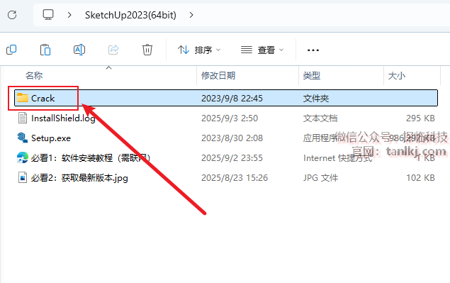 打开之前解压后的文件夹,双击打开文件夹【Crack】。