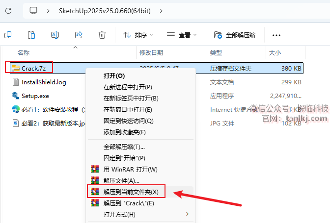 解压下载后的软件包。右键软件包,点击【解压到当前文件夹】(win11系统需先点击【显示更多选项】)。 (未安装解压软件可以点击此处查看:如何安装解压软件?)
