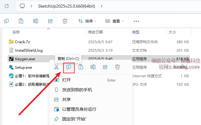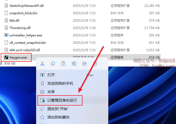 右键刚刚粘贴的文件【Keygen】,点击【以管理员身份运行】。