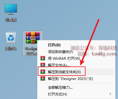 解压下载后的软件包。右键软件包,点击【解压到当前文件夹】(win11系统需先点击【显示更多选项】)。 (未安装解压软件可以点击此处查看:如何安装解压软件?)