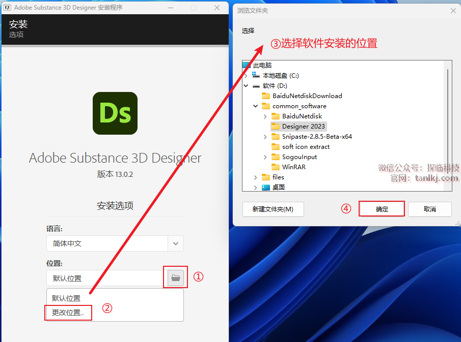 ③选择软件安装的位置,安装路径中不能包含任何中文字符;