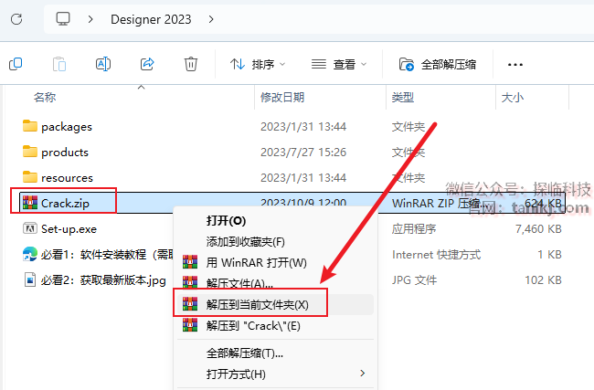 打开之前解压后的文件夹,解压文件【Crack】。