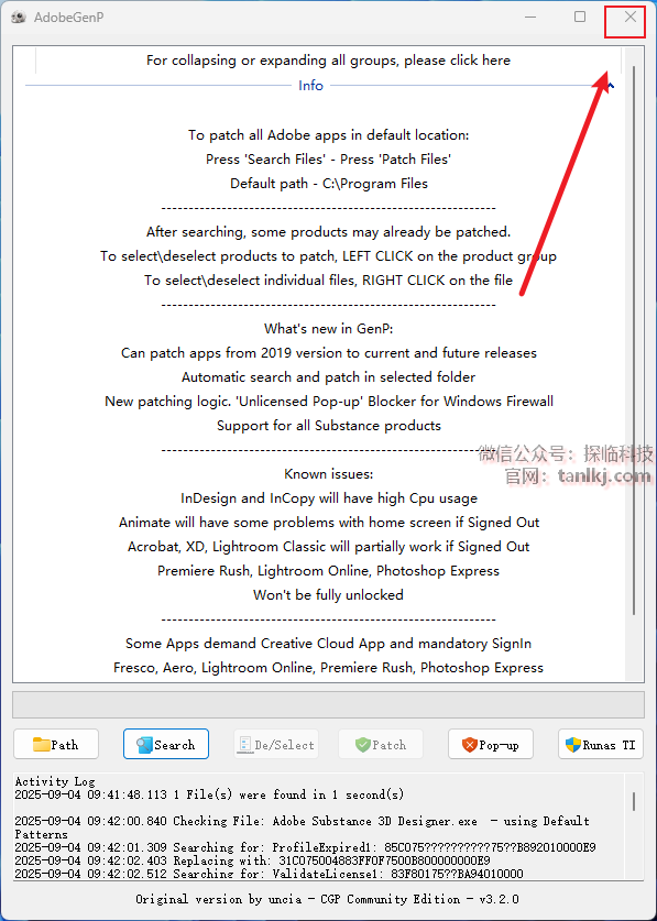 运行完成后,点击右上角的【X】关闭程序。