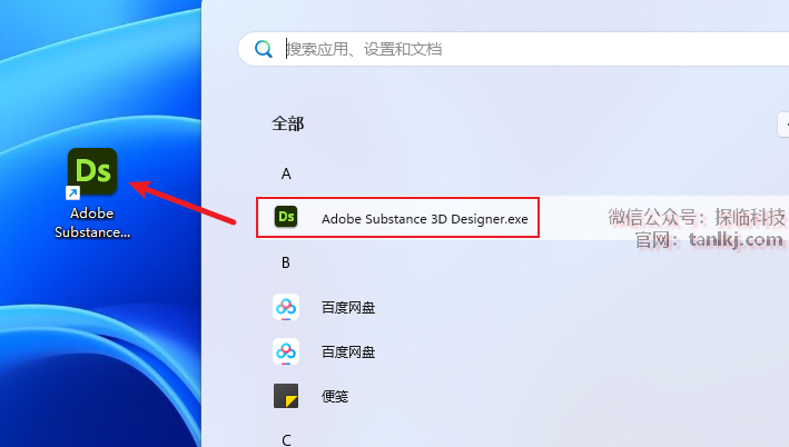 找到刚刚安装的软件【Adobe Substance 3D Designer】,并将其拖至桌面创建快捷方式。