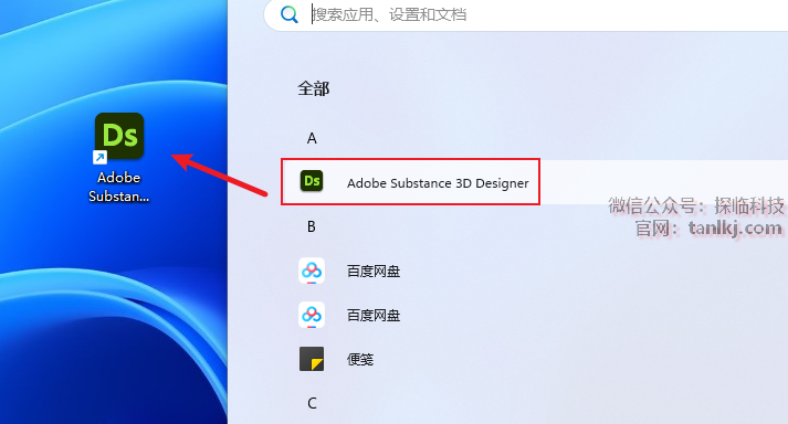 找到刚刚安装的软件【Adobe Substance 3D Designer】,并将其拖至桌面创建快捷方式。
