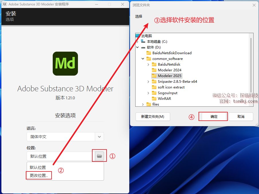 ③选择软件安装的位置,安装路径中不能包含任何中文字符;