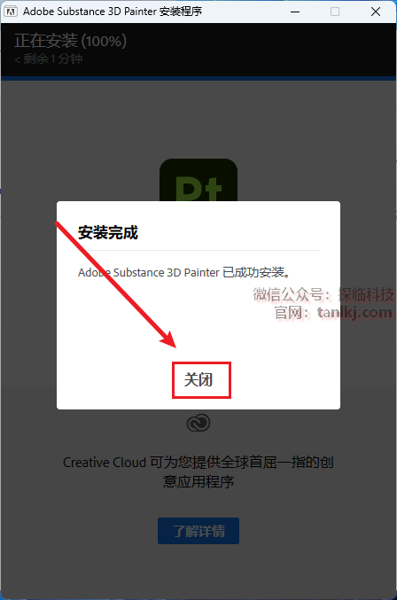 安装完成后,点击【关闭】。