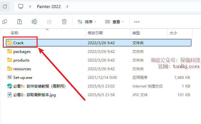打开之前解压后的文件夹,双击打开文件夹【Crack】。