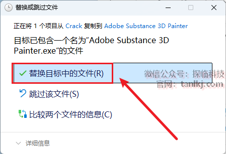 点击【替换目标中的文件】。