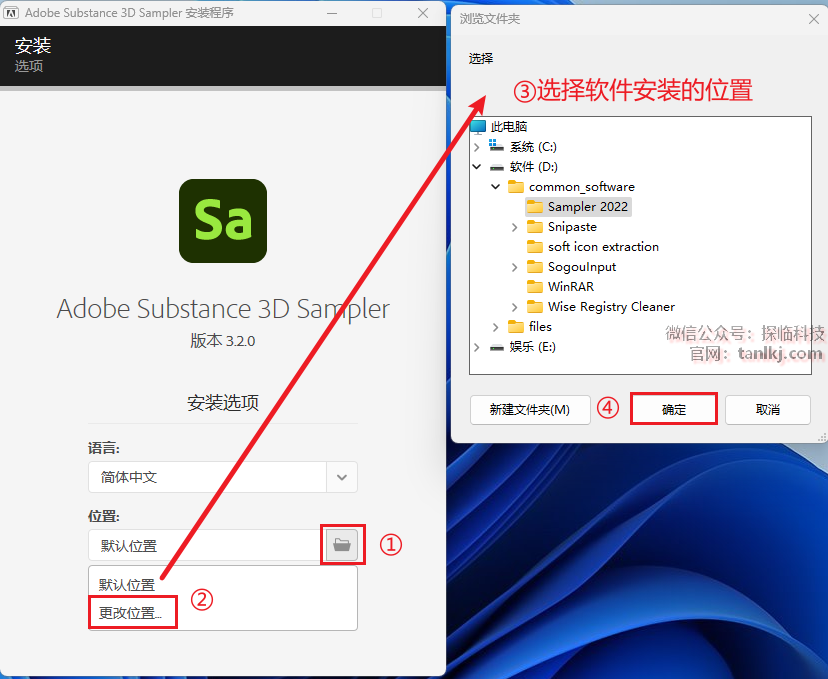 ③选择软件安装的位置,安装路径中不能包含任何中文字符;