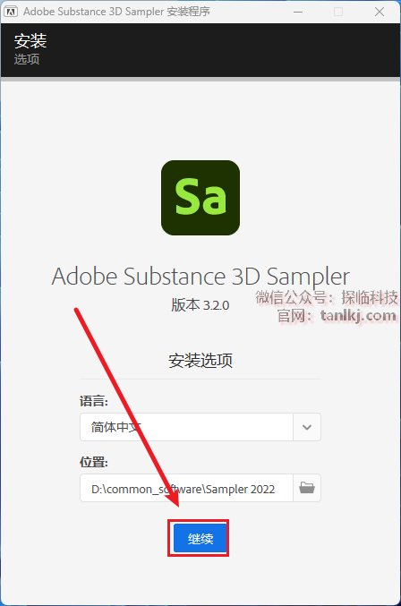 更改软件默认的安装位置,如不需更改,直接点击【继续】即可。