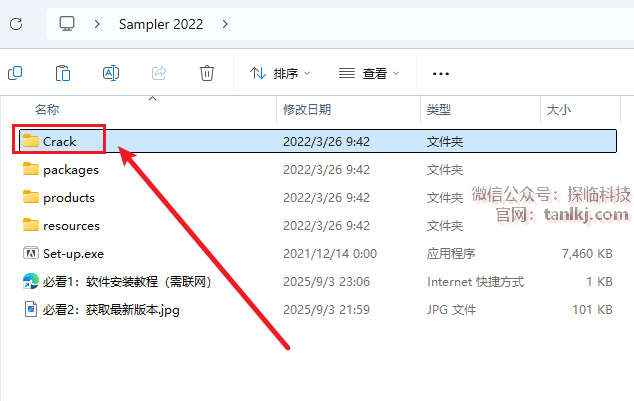 打开之前解压后的文件夹,双击打开文件夹【Crack】。
