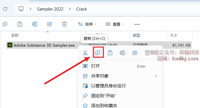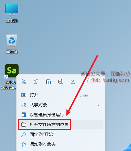 在桌面,右键软件【Adobe Substance 3D Sampler】,点击【打开文件所在的位置】。