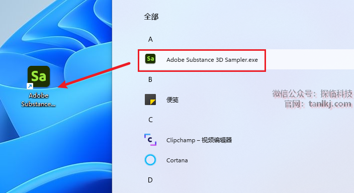 找到刚刚安装的软件【Adobe Substance 3D Sampler】,并将其拖至桌面创建快捷方式。
