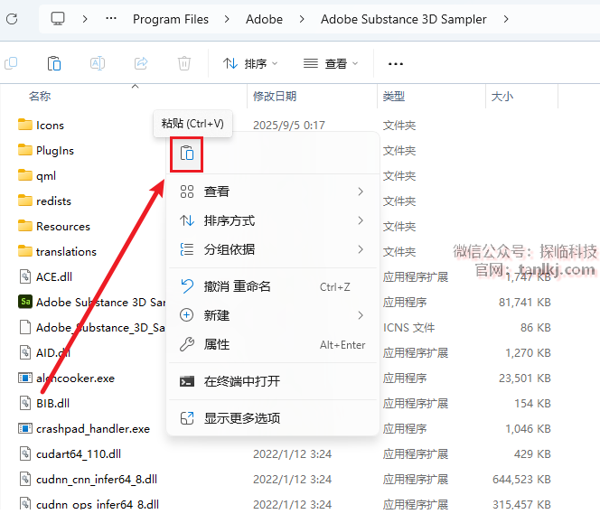 在弹出来的文件夹内,粘贴刚刚复制的文件。