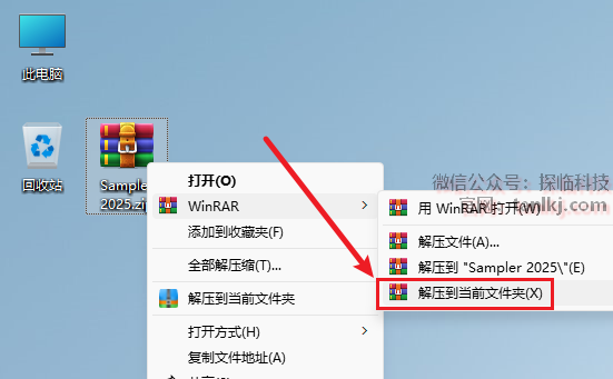 解压下载后的软件包。右键软件包,点击【解压到当前文件夹】(win11系统需先点击【显示更多选项】)。 (未安装解压软件可以点击此处查看:如何安装解压软件?)