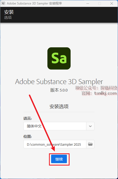 更改软件默认的安装位置,如不需更改,直接点击【继续】即可。