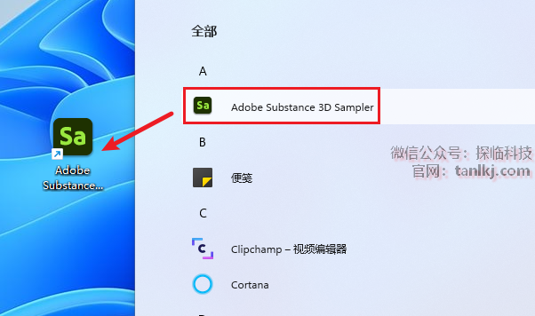 找到刚刚安装的软件【Adobe Substance 3D Sampler】,并将其拖至桌面创建快捷方式。