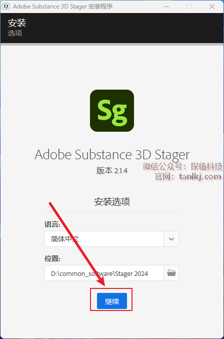 更改软件默认的安装位置,如不需更改,直接点击【继续】即可。